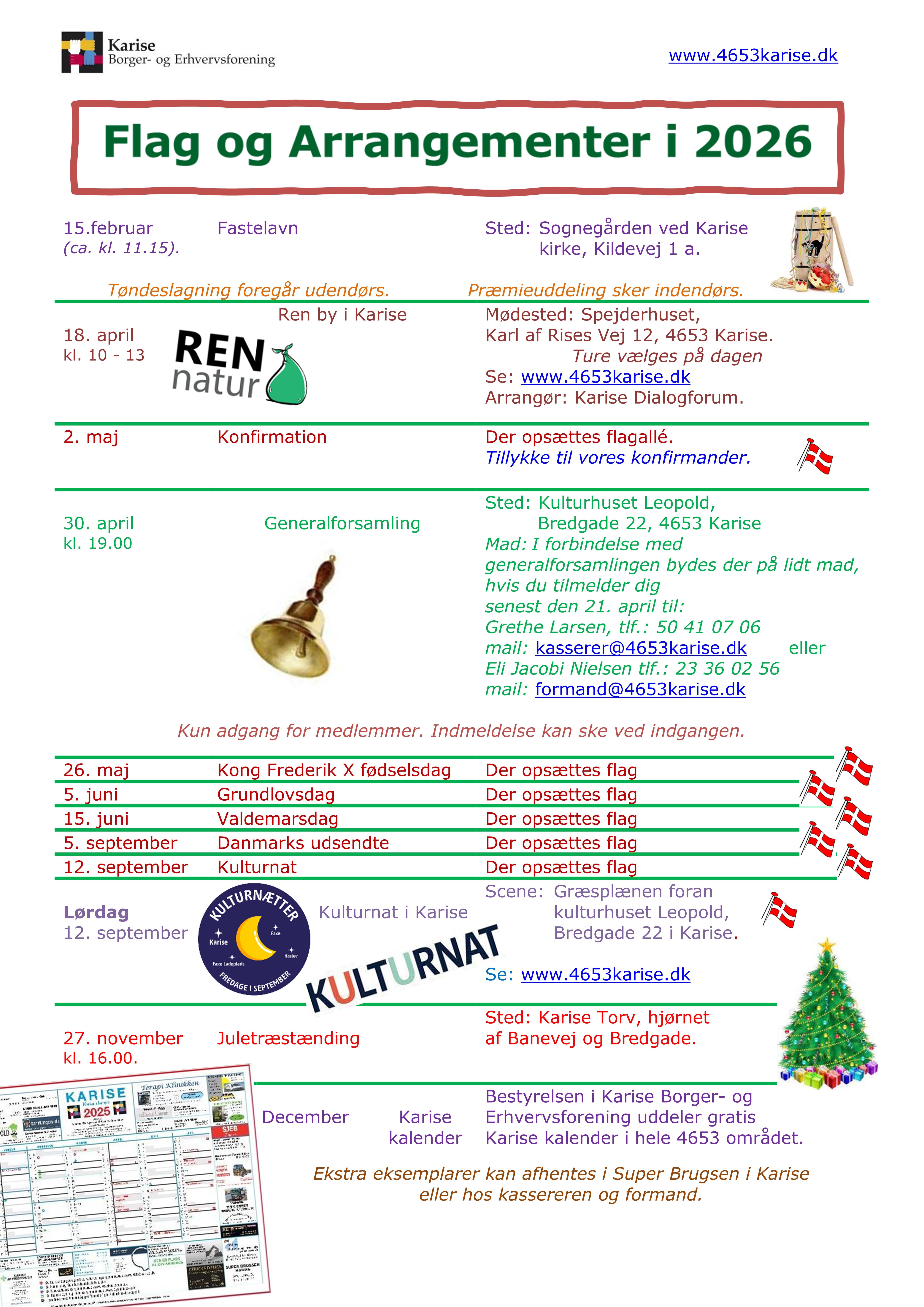 Samle medlemmer og andre borgere i Karise til fælles arrangementer (erhvervsmæssig/social og kulturel karakter)