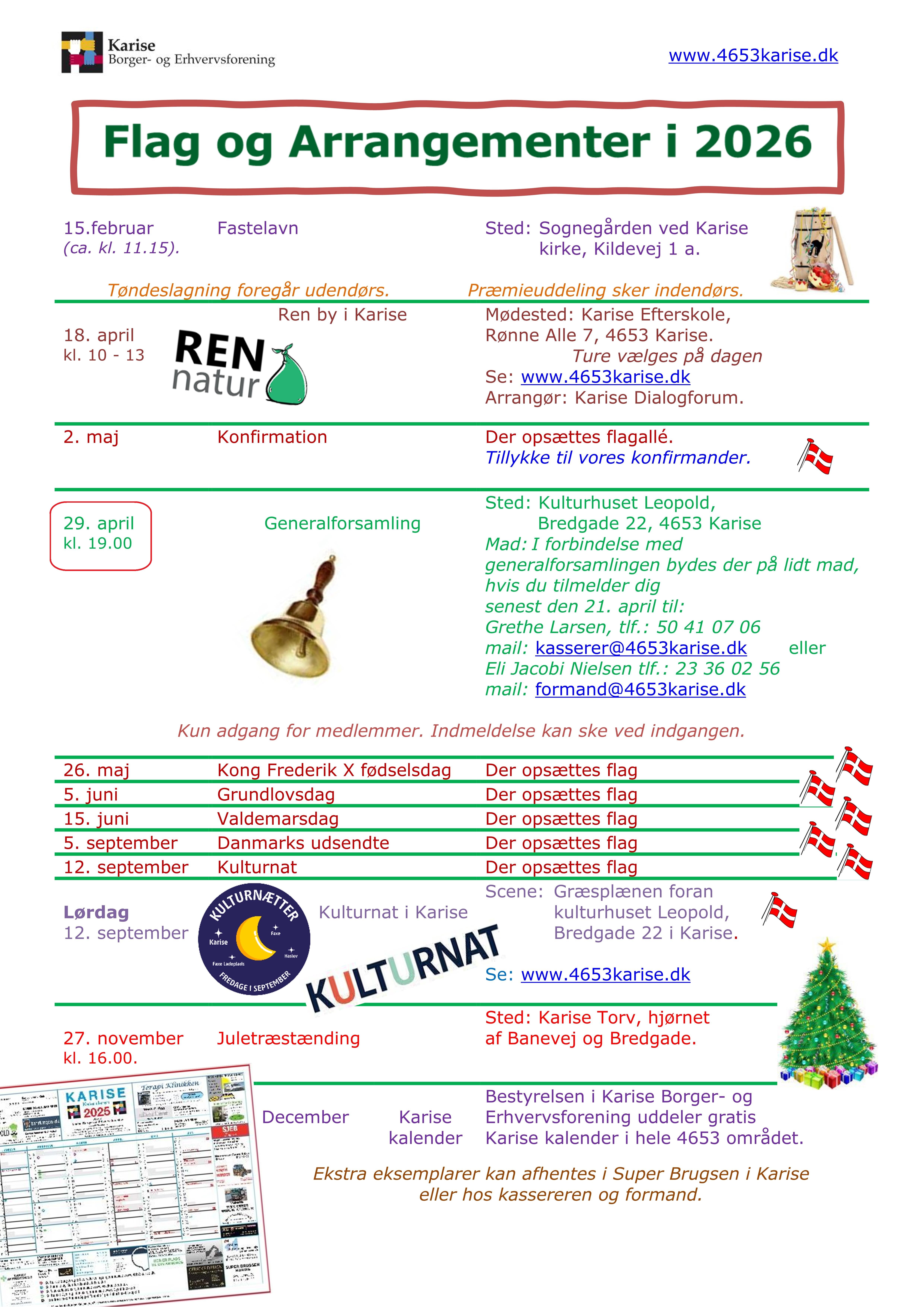 Henvendelse til kasserer Grethe Larsen: kasserer@4653karise.dk